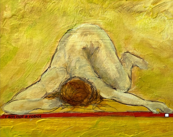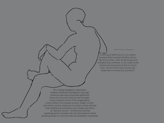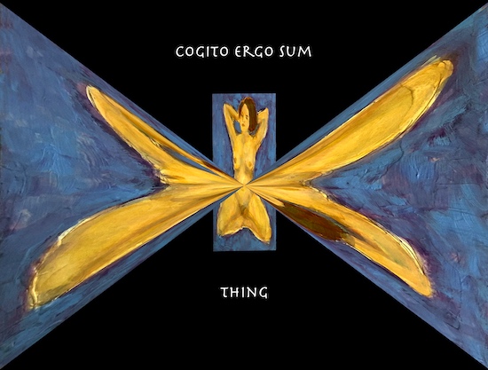 A visual exploration of Descartes' observation on what it means to be human (cogito ergo sum | I think therefore I am) in the age of artificial intelligence or 'bots with thoughts'. The artist invites the viewer to contemplate with Descartes the physical body, the mind, and the toil of living in harmony with the fragility, flaws and the beautiful irregularities of being alive and human in the age of 'artificial intelligence' and its inevitable imperfections with rigid consequences. | ||||